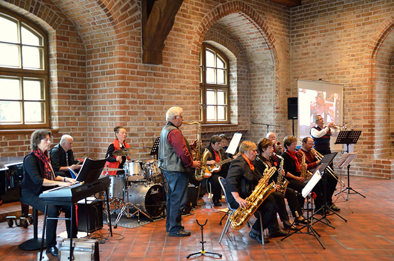 Wir spielen die klassische Big Band Literatur des Great American Song-Book und Klassiker des Rock’N Roll und Swing, z.B. St.Louis Blues, Chattanooga Choo choo, Ain’t Misbehavin etc. Wir sind engagierte Laien und Fortgeschrittene.